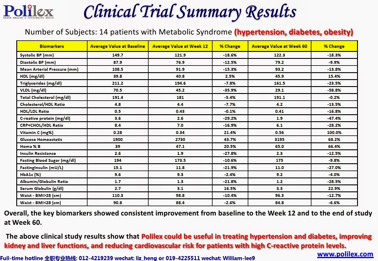 总体而言,这个研究显示出许多关键的生物标志物,从基线到第12周,直到第60周,具有一致的 改进。因此宝丽乐可用于治疗高血压和糖尿病,改善肾和肝的功能,以及降低心血管疾病的