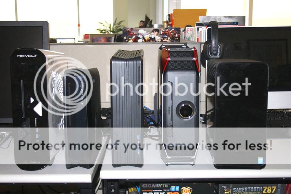 (尺寸比较,从左到右:iBUYPOWER Revolt, Alienware x51, Raven rvz01, Asrock m8,和EVGA Hadron Air,图片来源:Maximum PC)