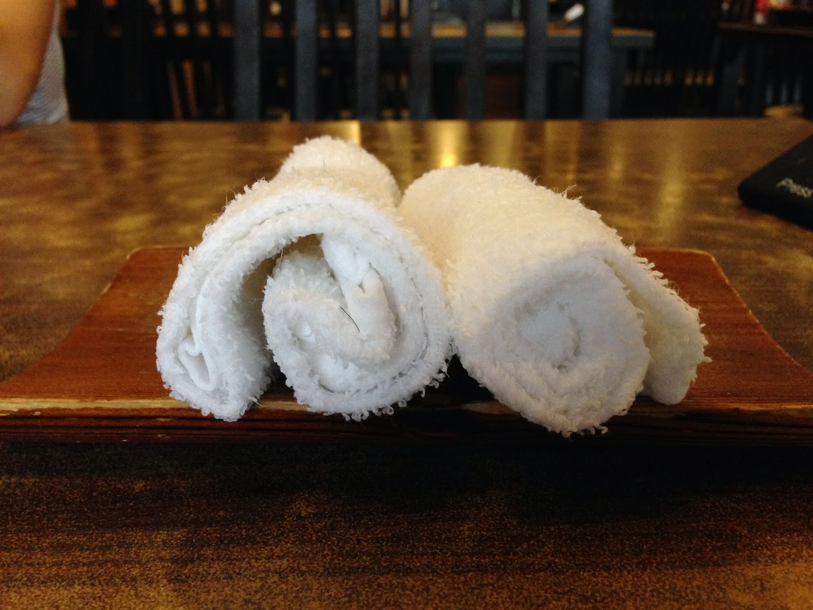 | | The attentive waitress will provide you the warm towel for you to clean your hand after you've made your order. |