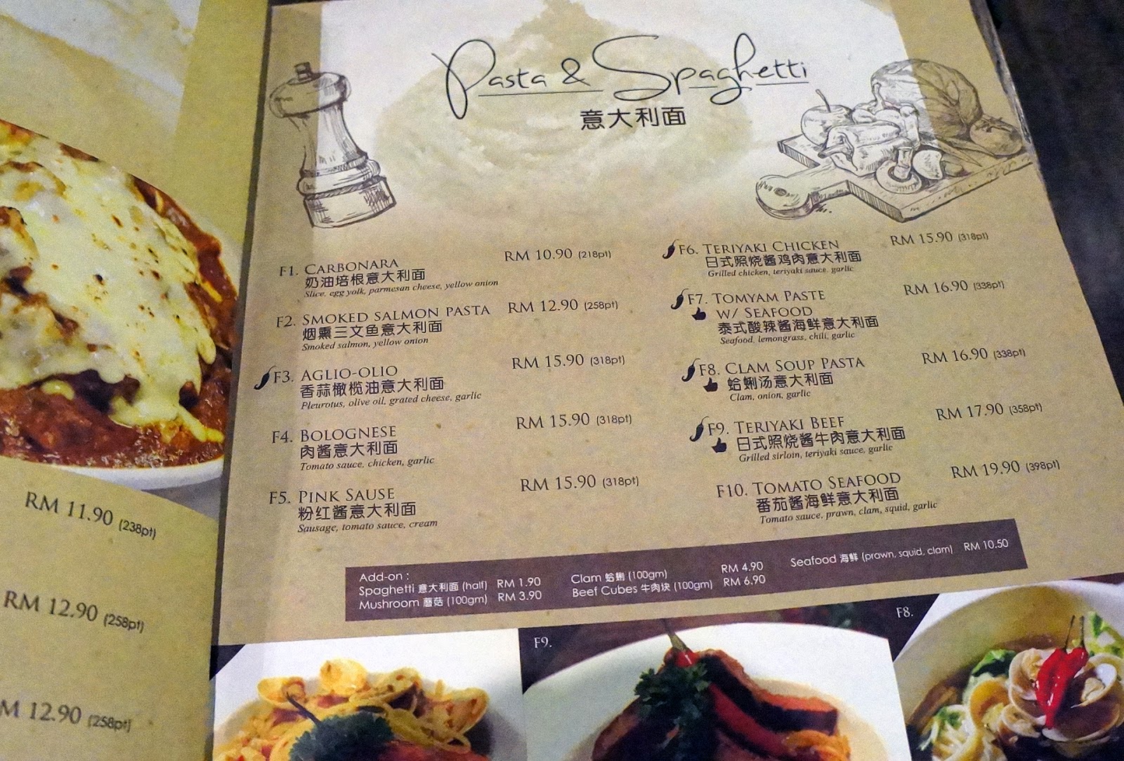 楼上提供的餐点属西餐类,有意大利面、扒和baked rice等,价钱还算合理。