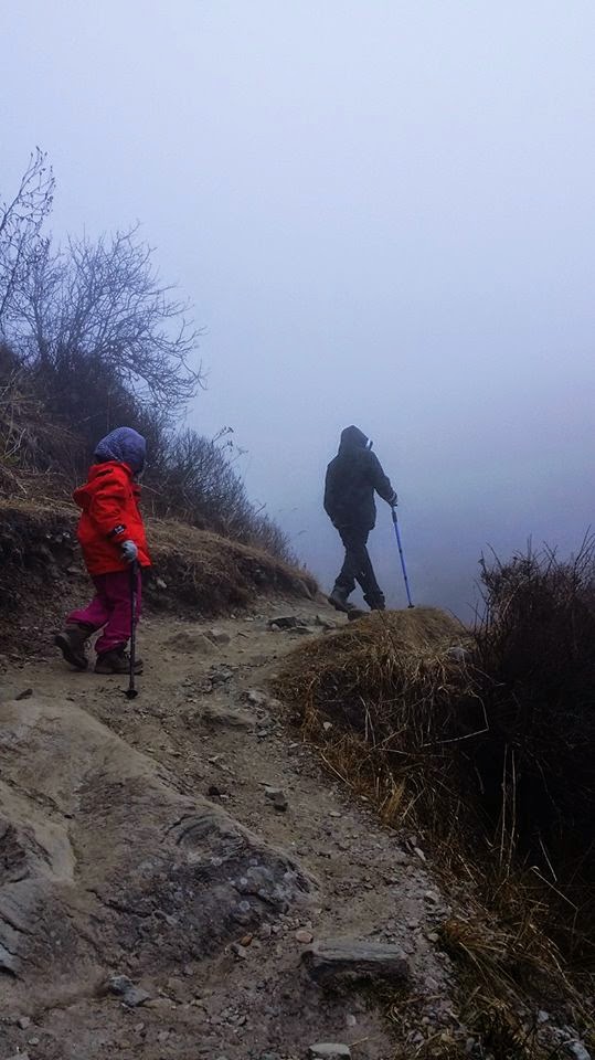 所以我們刷牙洗臉後(請別問洗臉是否很冷, 是真的很冷!), 然後吃完早餐8AM就準時出發! 我們大概9:30AM就到達HIMALAYAN休息站, 在那里又在遇上那幾位馬來西亞的徒步者(他們比我們早出發), 聊了幾句他們又繼續走了.