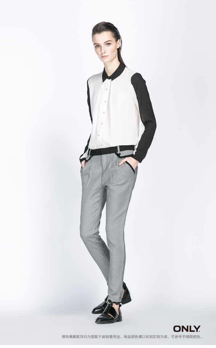ONLY春装千鸟格修身舒适小脚休闲裤面料裤女