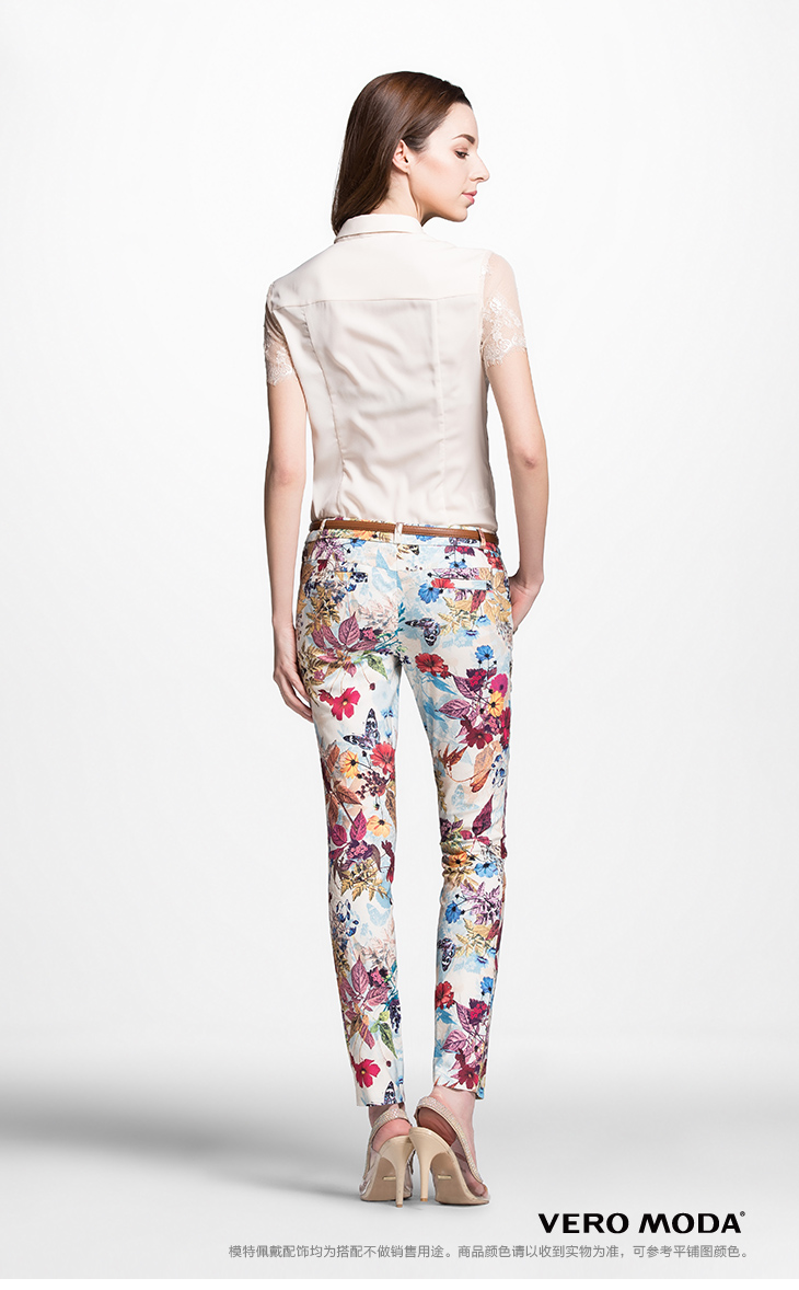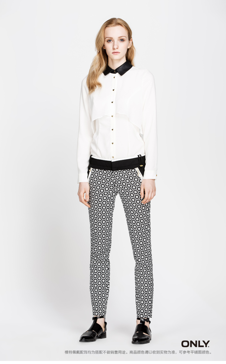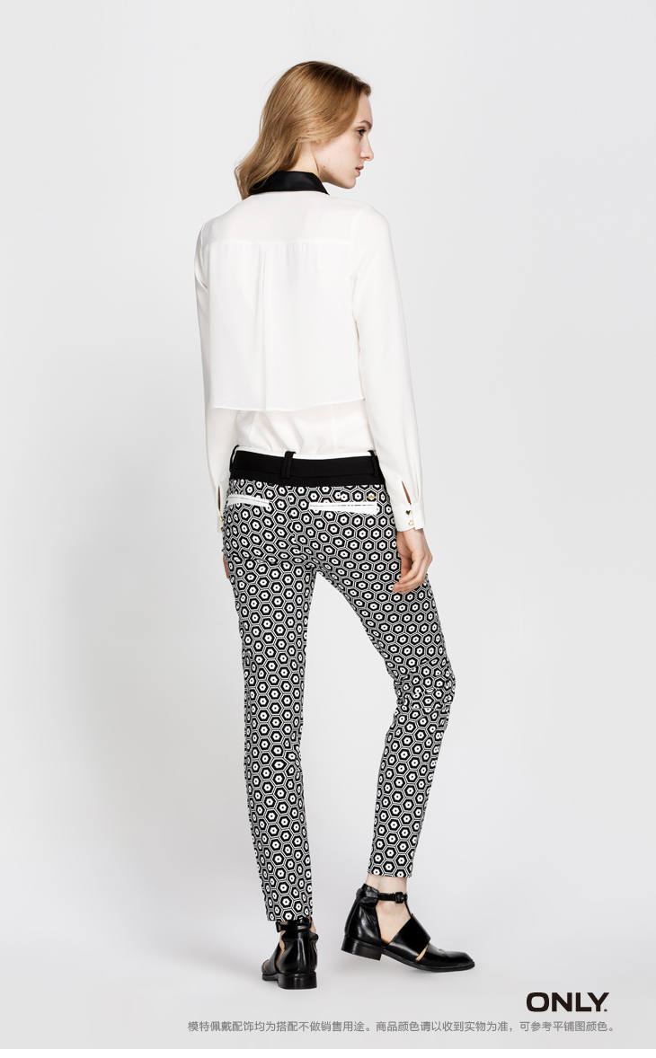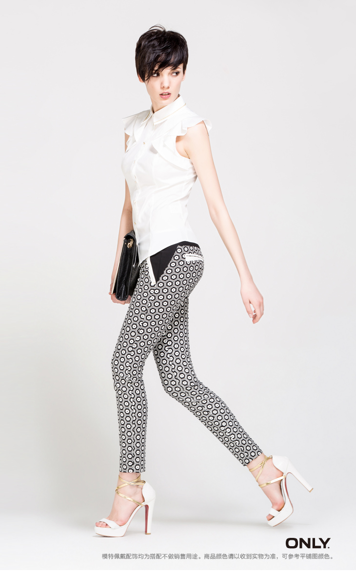 ONLY海报款春新蜂窝印花修身面料裤休闲裤女