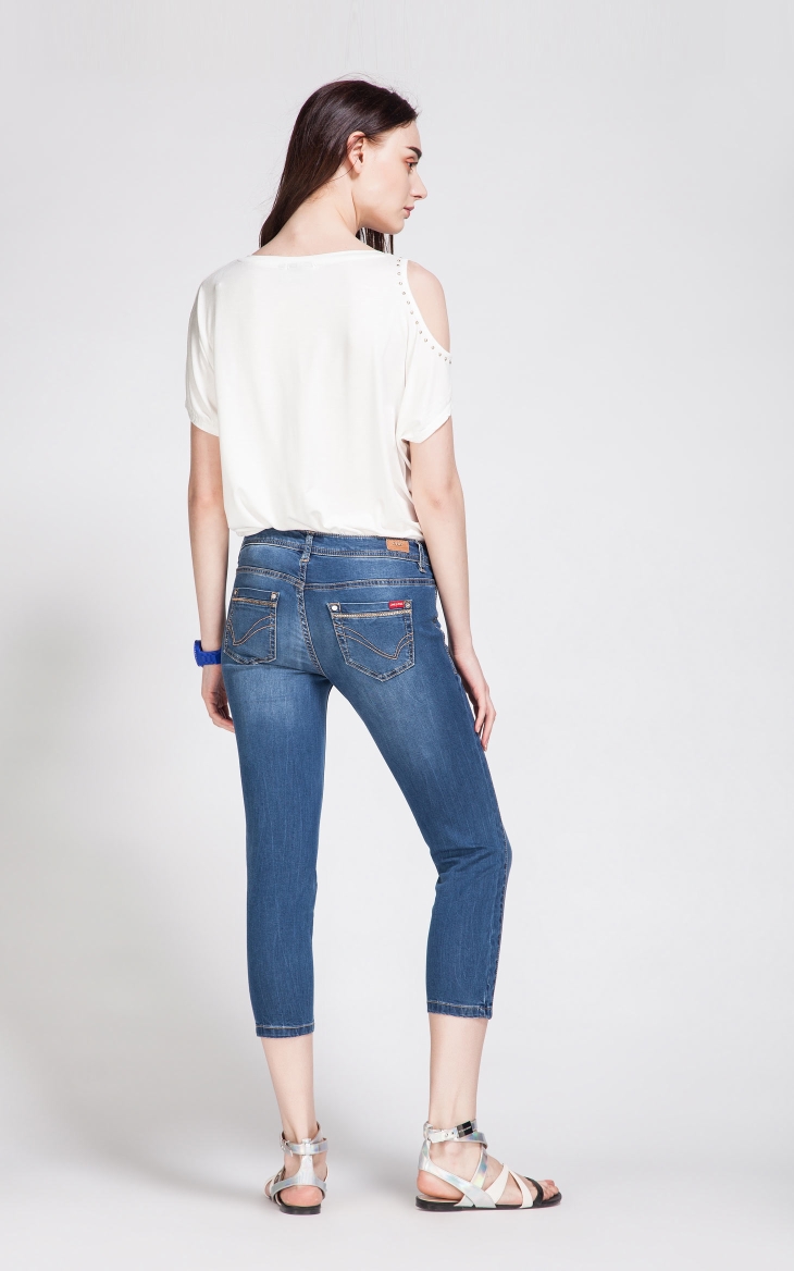 ONLY春夏新含莱卡水洗磨白修身SS七分牛仔裤女