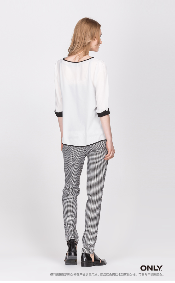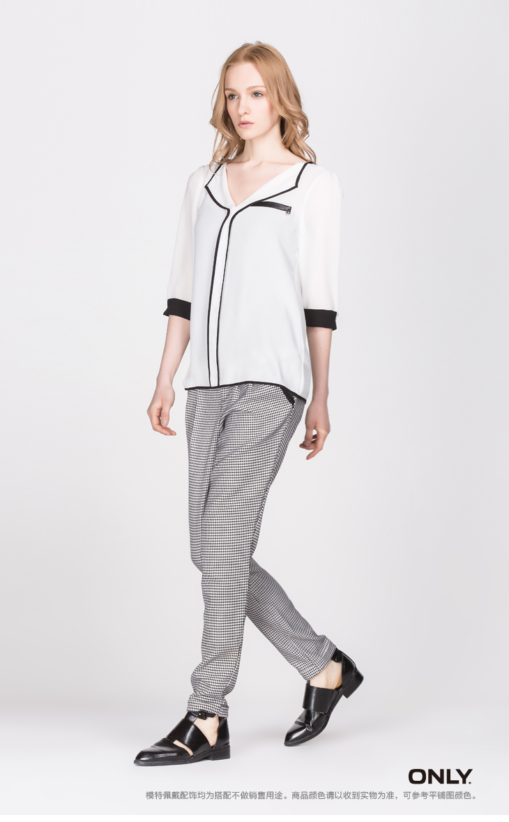 ONLY春季新品两件套撞色V领七分袖短款衬衫上衣女