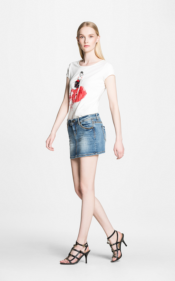 SENTIBULA尚都比拉2015夏装新款女装上衣 印花修身短袖套头春夏女t恤