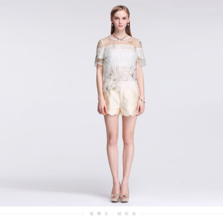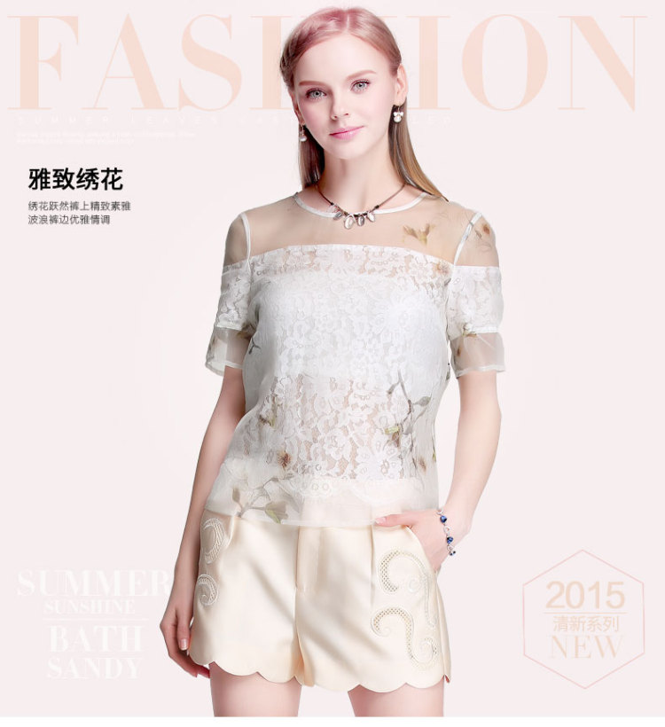 EIFINI伊芙丽 2015夏装新款韩版钉珠短袖衬衫女上衣修身衬衣