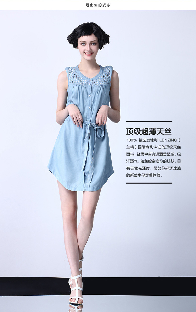 右道UDOT 天丝编织A字系带无袖连衣裙牛仔长裙2015夏