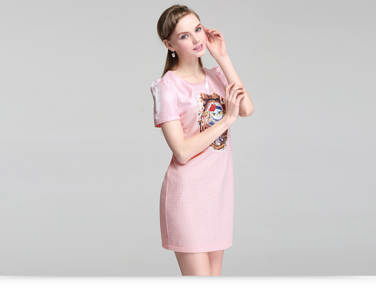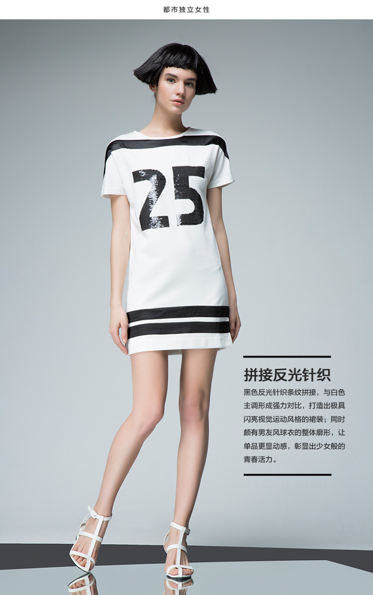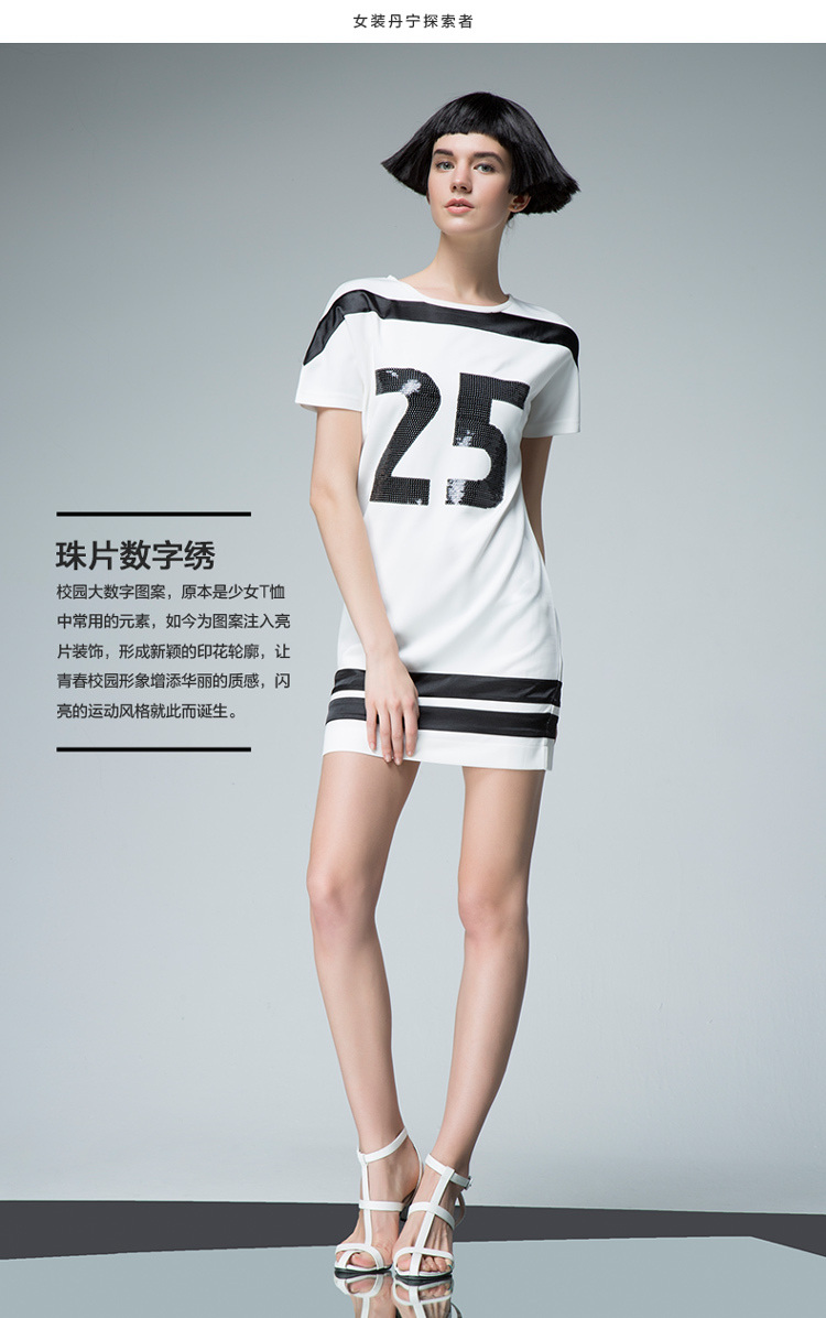 UDOT右道数字亮片绣运动短袖长T连衣裙夏短裙2015夏季新款