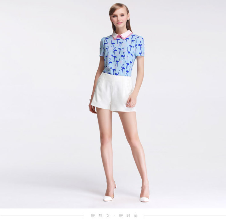 SENTIBULA尚都比拉2015夏装新款女衬衫淑女百搭娃娃领衬衣职业短袖雪纺衫