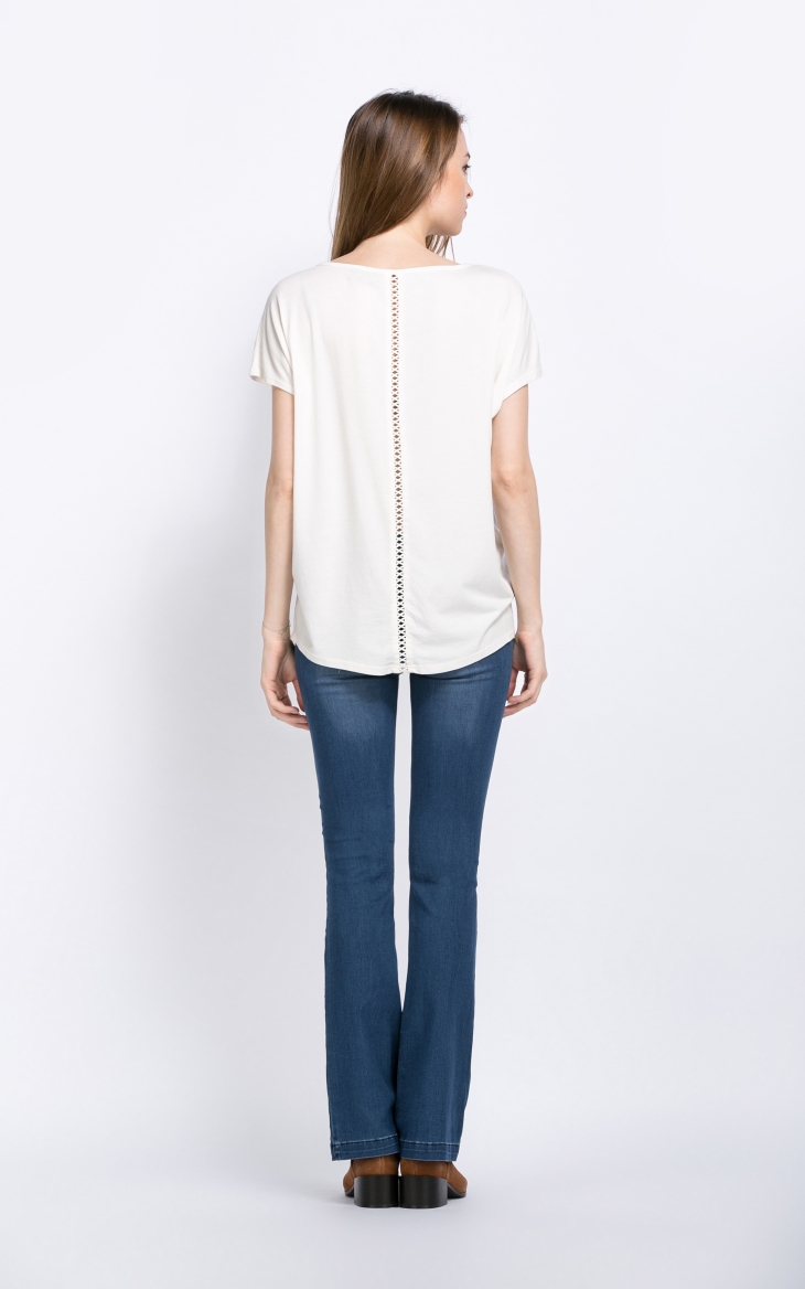 UDOT右道星星印花拼接蕾丝肩T恤衫女装