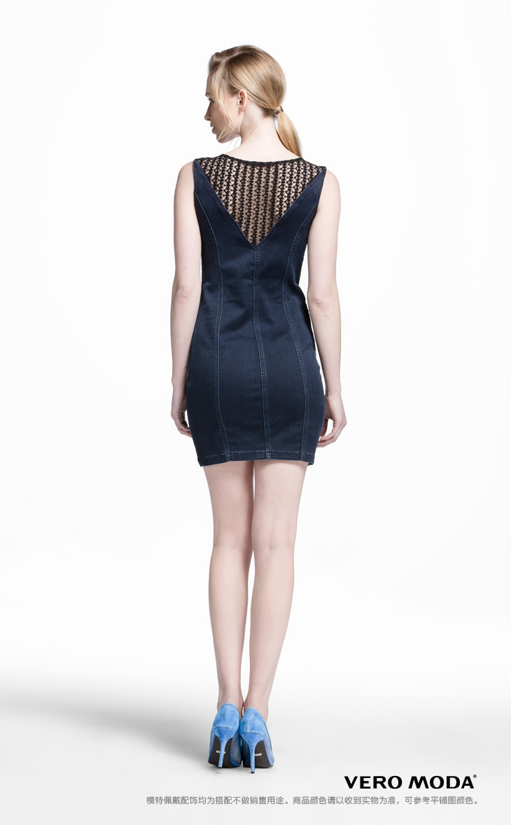 Vero Moda蕾丝牛仔拼接高弹修身连衣裙