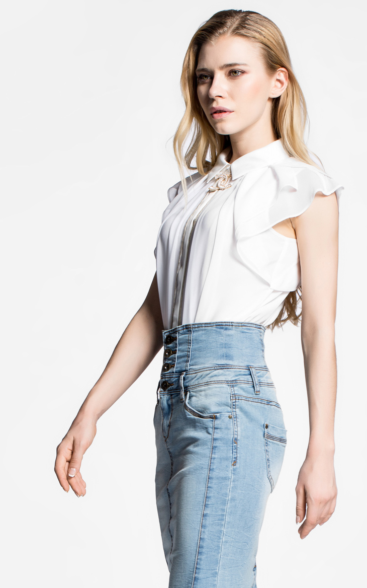 ONLY春夏新品荷叶边袖修身衬衫衬衣女