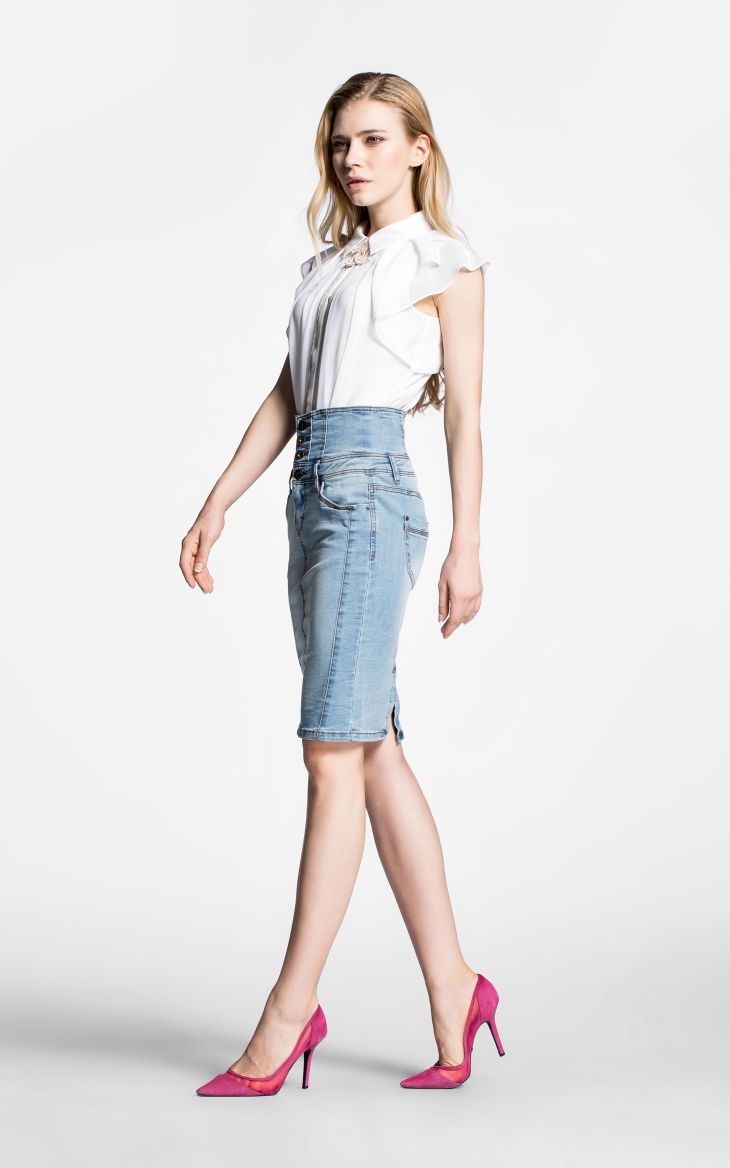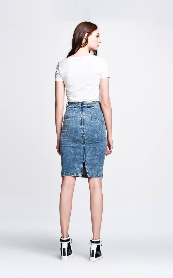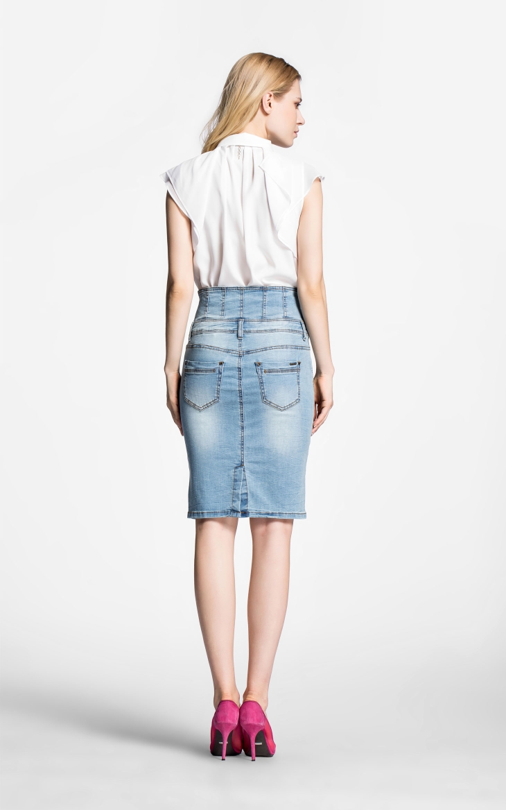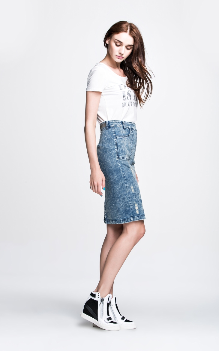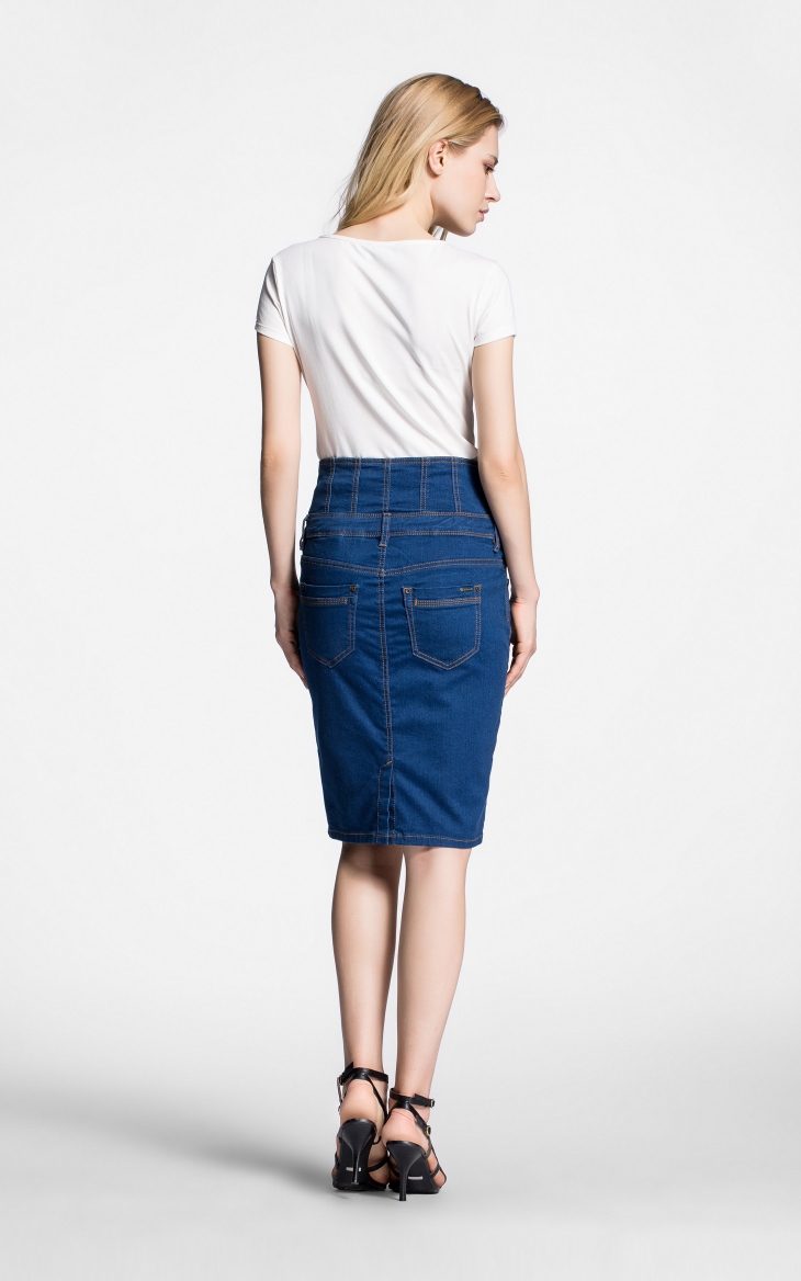 Vero Moda弹力水洗钮扣装饰高腰拼接修身长包裙