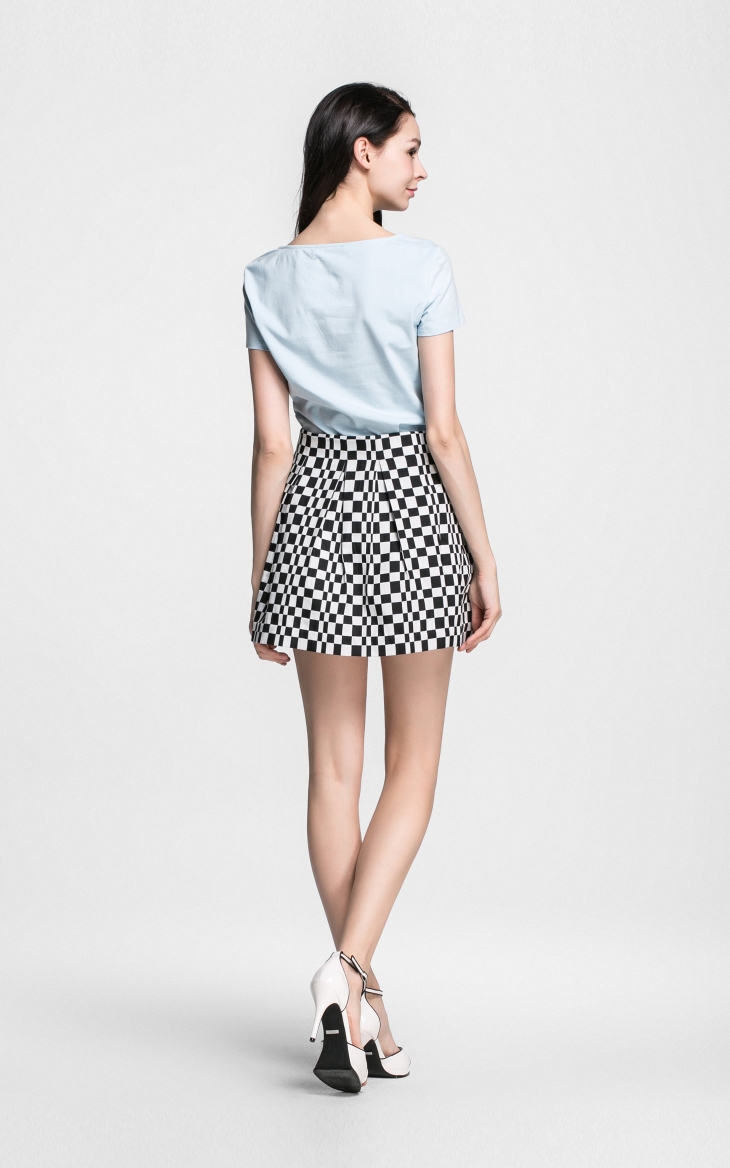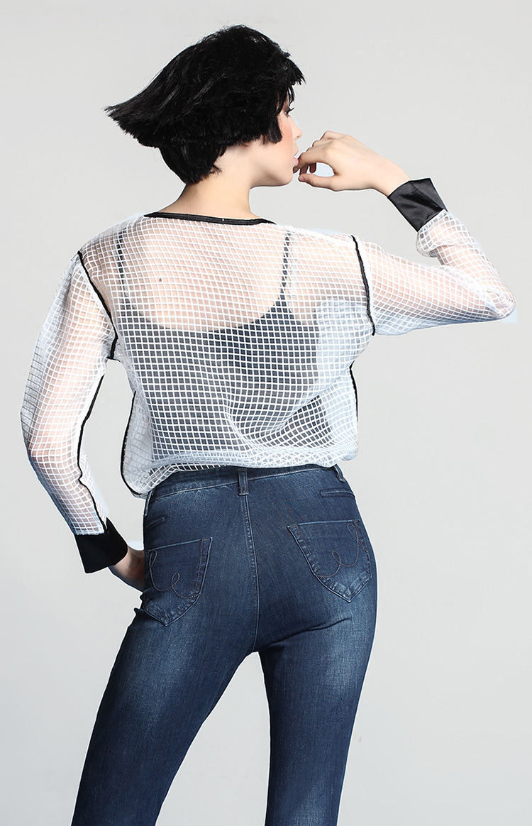 UDOT右道透明格子宽松包边雪纺T恤衫