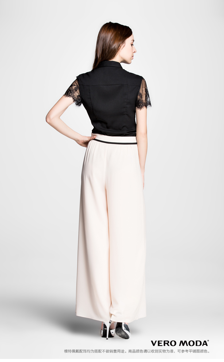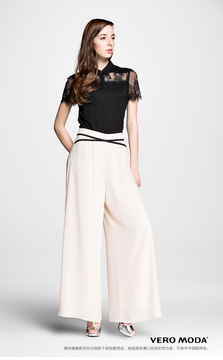 Vero Moda高腰撞色拼条脚口延边雪纺阔腿休闲裤