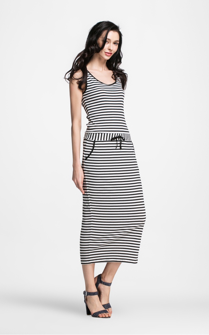 Vero Moda撞色条纹圆领无袖长款包臀针织连衣裙夏新休闲