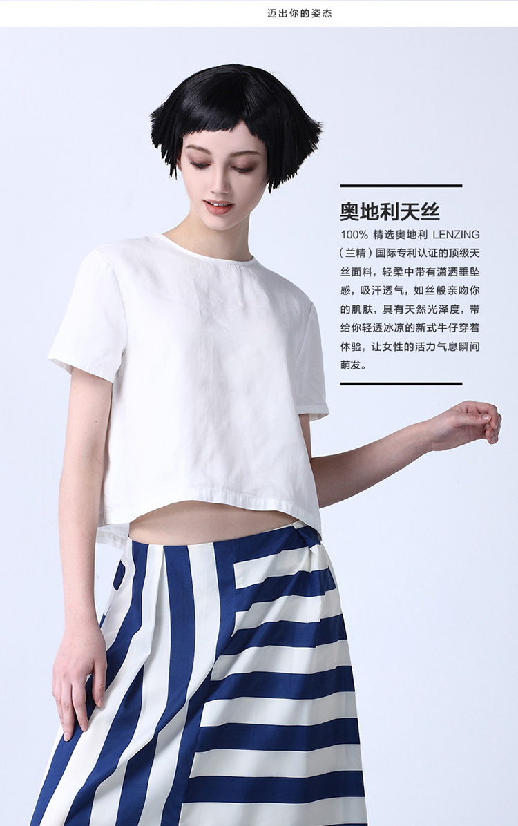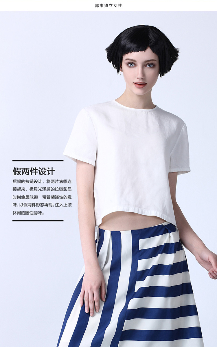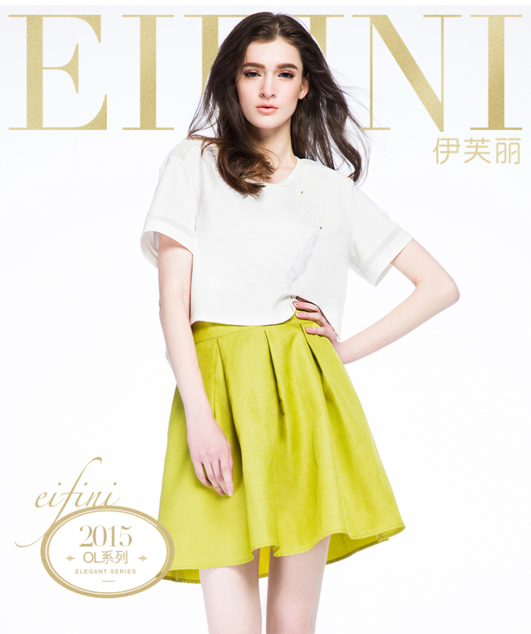 EIFINI伊芙丽 2015夏季新款宽松小上衣圆领白T恤女夏短袖棉