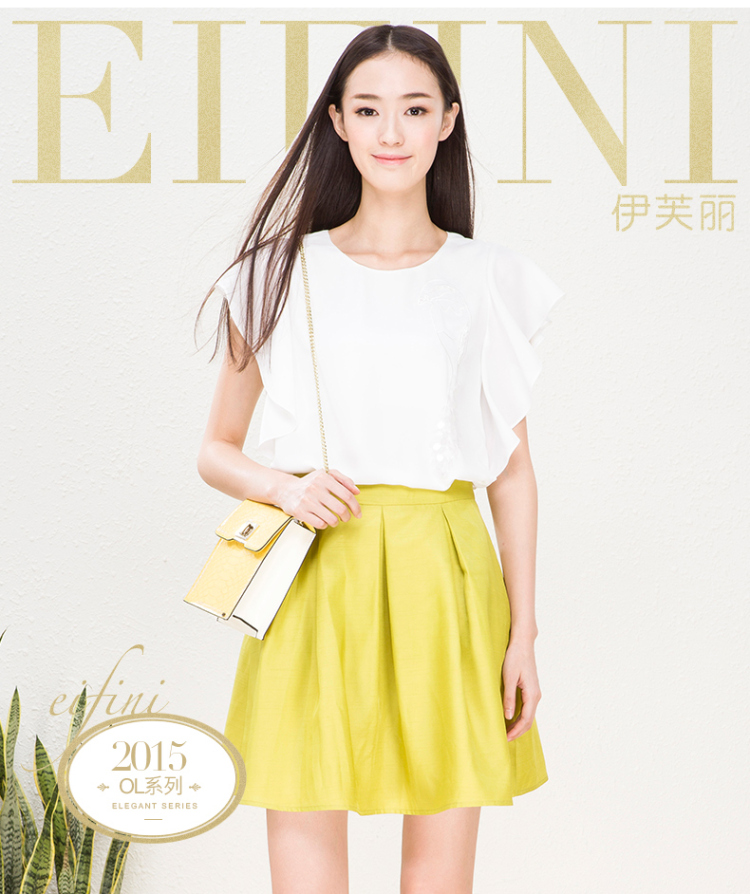 EIFINI伊芙丽2015夏装新款韩版荷叶袖圆领白色雪纺衫上衣女夏