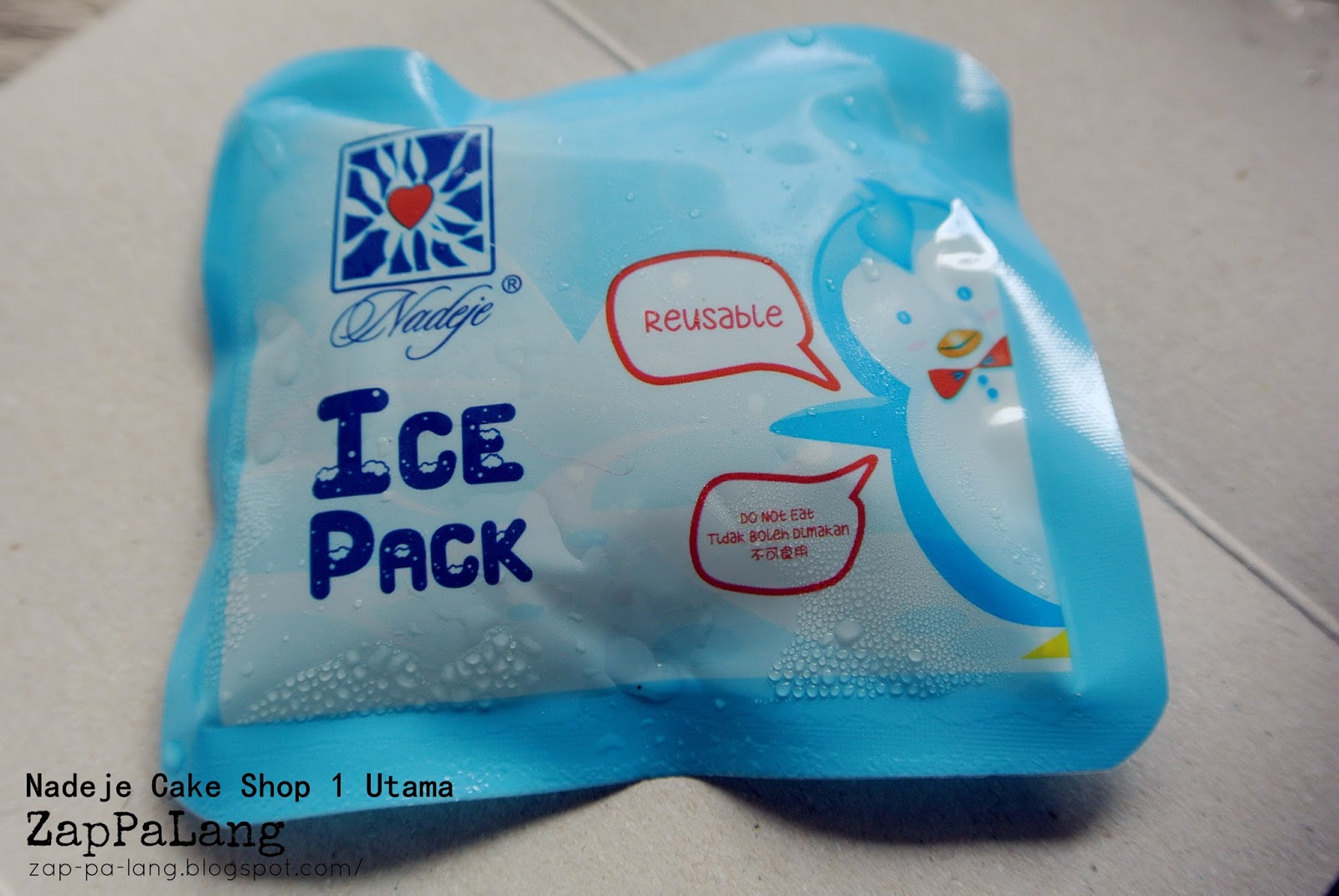 因为适逢假期,KC 在那里等了好久都没有座位空出来,大部分的朋友都是三三两两的一面享受蛋糕和聊天,没有人眼看不是办法,我就决定了把点好的蛋糕外带回家!Nadeje 家的千层蛋糕里头的奶油可是不耐室温的,他们外带的盒子里有会附有冰袋, 冰袋上还表明了可以循环使用的, 这正适合爱环保的我, 赞哦!