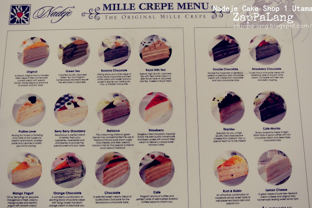 | 之前已经介绍过马六甲Nadeje 3种口味的千层蛋糕(Link), 这次经Open Rice 的邀请, 我来到了1 Utama的Nadeje 分行来尝试另外任选的两种口味蛋糕。
