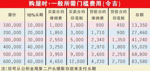 头期钱+律师费+印花税...买屋子到低需要多少钱才够呢?
