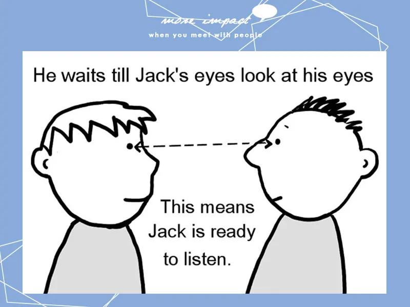3. Make eye contact 说话的时候看着对方的眼睛是必须的,这也代表着你有全神贯注地听对方说话,眼神的交流能够让对方知道你是专心在这件事上。 Photo:My Image Expert
