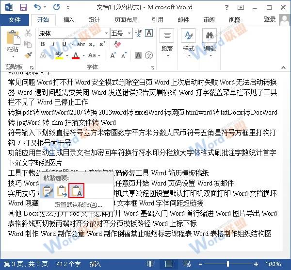 方法一:修改粘贴选项 1、打开一片空白文档,复制网页中需要的内容到Word文档中。 2、在文末会出现一个“粘贴选项”按钮,我们单击它,然后在弹出的菜单中选择“只保留文本”项。
