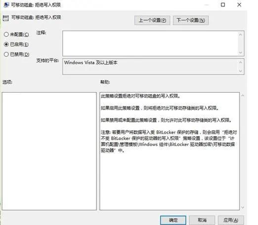 设置好后,不管用U盘还是移动硬盘,都不能复制或移动电脑上的文件啦~如果以后想解禁,同样进入【可移动磁盘拒绝写入权限】选择【未配置】就行。
