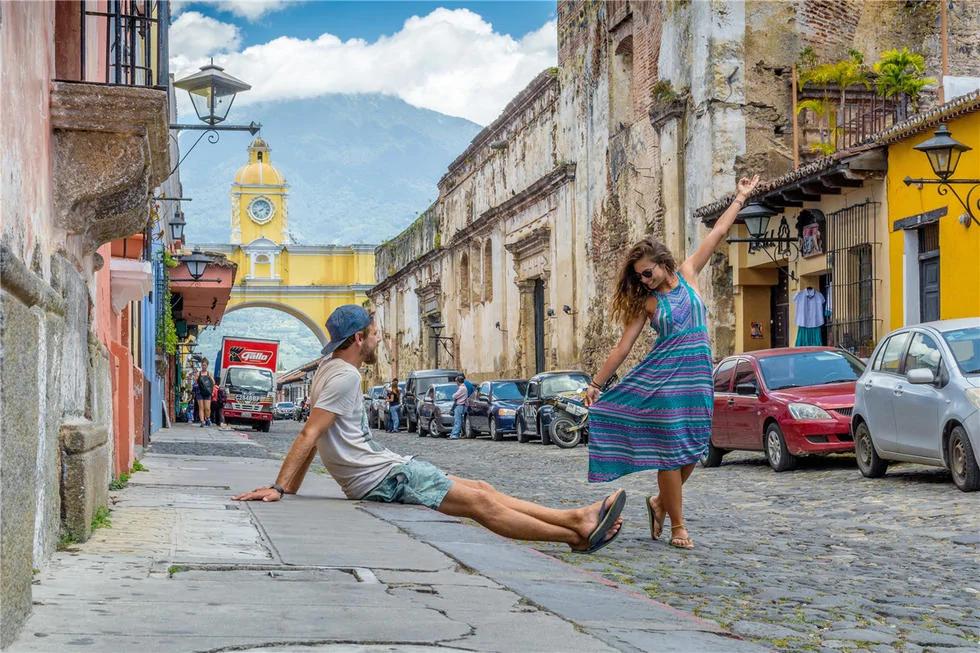 旅行可不总是充满着欢笑,偶尔也会有掉眼泪的时候。布雷特最近在尼加拉瓜丢了一部手机,这提醒了他旅行时一定要注意人身和财产安全。此外,夫妇二人偶尔也会闹矛盾,对双方的感情是一个极大的考验。图为夫妻二人在危地马拉安提瓜岛。