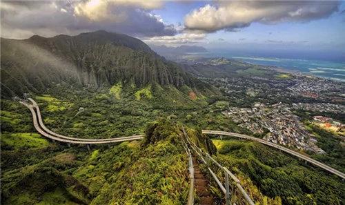 9)夏威夷俳句楼梯:被称为天堂的阶梯,可以在瓦胡岛的岛上步道看到。小路很陡峭。海拔850米,从上往下望景色非常漂亮。