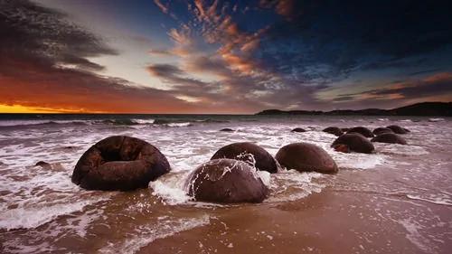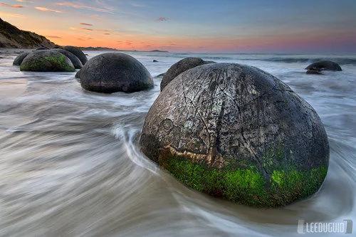 ▌31)新西兰摩拉基大圆石:在新西兰奥玛鲁以南40公里处的摩拉基,沙滩上散布着很多圆形巨石。一些巨石从砂岩悬崖上伸展出来。每个巨石都重达数吨,高达两米。