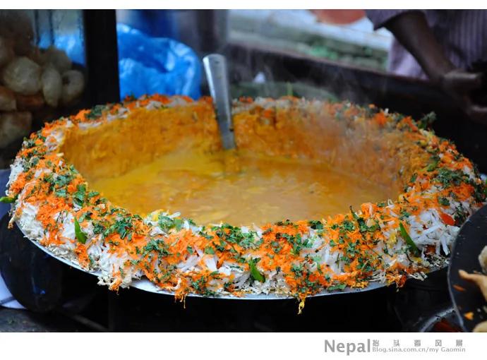 尼泊尔的街头饮食文化可谓颇具特色。晃荡在加德满都的泰米尔街,恍如穿越回到了中古世纪的集市。狭窄的古街巷两旁是密集的工艺品店和形色的小地摊儿,依旧原始的买卖方式因妇人们传统的沙丽更加鲜活,混乱的街道秩序也由于牛儿和狗儿们的并肩而变得有趣儿。阵阵飘过的酥油灯的醇香点燃了游人的好奇心,各种食品香料的气味更可激发蠢动的购买欲。在大量游客和外来文化的冲击下,尼泊尔仍努力恪守着属于自己的生活节奏,正如小贩们长久不变的叫卖声,显然并不全都动听,但却不失为一曲地道的中古世纪的市井小调。