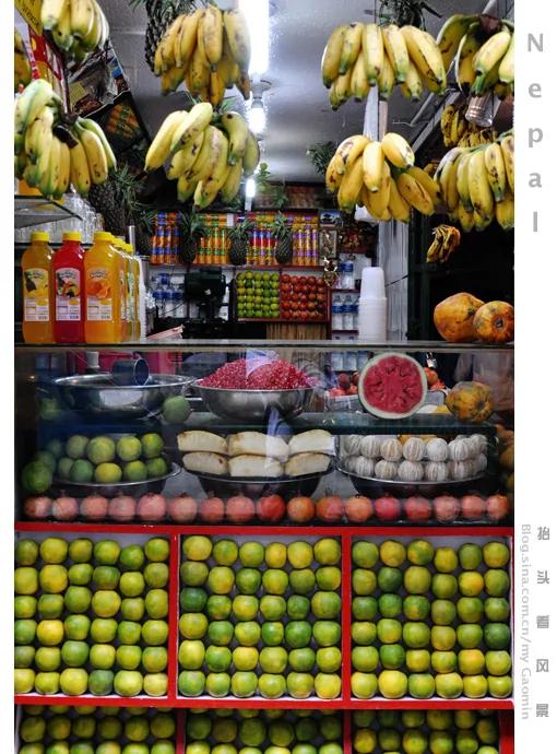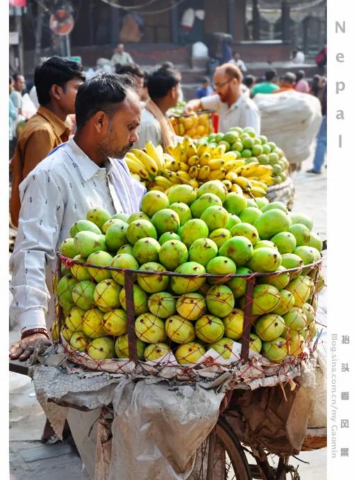 尼泊尔街头很多这样的水果车,很漂亮,当然芒果和香蕉都很甜。
