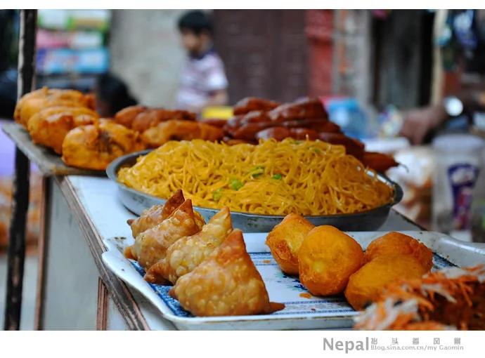除了甜食,尼泊尔很多街头小吃都是油炸过的,有些类似中国的炸茄盒。炒面也很常见。