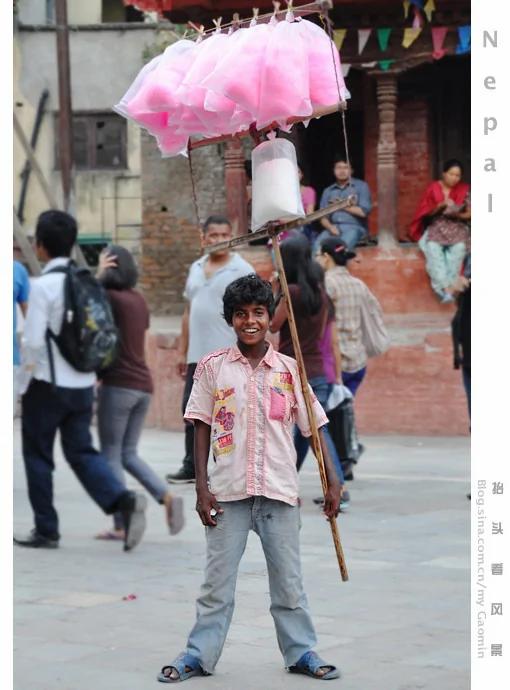 粉红色的棉花糖,在加德满都杜巴广场经常会见到卖棉花糖的少年。通常为了有生意会跟随游人很长时间。