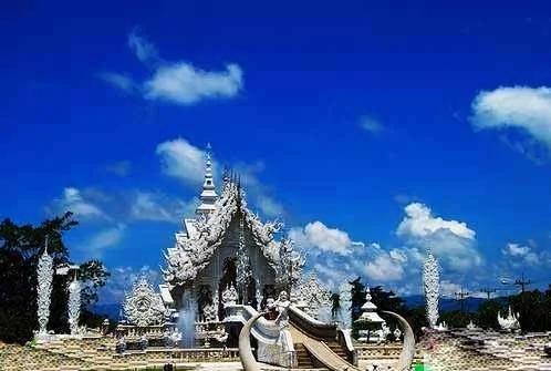 泰国Chiang Rai内的白龙寺是世界上又一个独一无二的寺庙。全寺白色,雕有无数条龙,还有各种华丽造型,并且在这些图案中镀有银色的金属条带,从合适的角度看上去,就像是全寺庙散发着令人惊异的魔法之光。