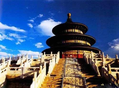 位于我国首都北京,始建于明永乐十八年(1420年),名天地坛。嘉靖九年(1530年)因立四郊分祀制度,于嘉靖十三年(1534年)改称天坛。清乾隆、光绪帝重修改建后,才形成现在天坛公园的格局。天坛被两重坛墙分隔成内坛和外坛,形似“回”字。两重坛墙的南侧转角皆为直角,北侧转角皆为圆弧形,象征著“天圆地方”。