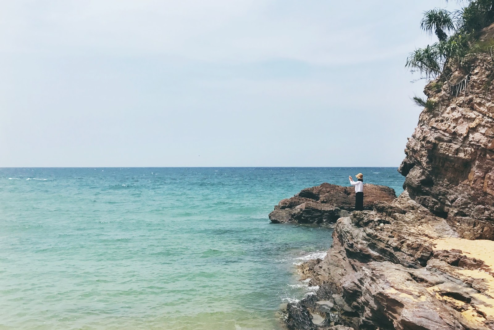 这个沙滩蛮特别的,由于地理位置的缘故,每当海水涨潮时,这些石山将会被海水完全包围,但一旦退潮后,游客们就可以爬上石山,在最高处遥望无敌的大海景。问了当地居民,说12月可以看到最壮观的景色。