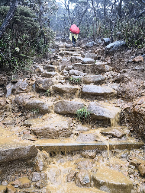 我們這次1月2日上山,在第一天最後兩公里(約2pm)的時候開始下了大雨,我們只好咬緊牙根加快腳步走到山屋。穿上雨衣,但鞋子和襪子都全濕了! 雨大到哭