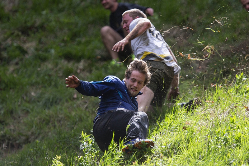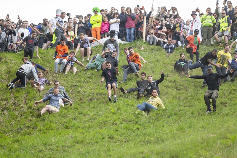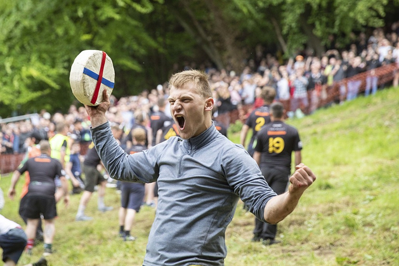 当地时间2019年5月27日,英国格洛斯特,当地举办一年一度的滚奶酪大赛。