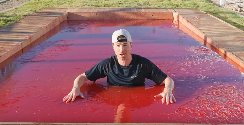 ▼Mark Rober表示,他从小就想体验一下在果冻中游泳的感觉,要完成这个梦想很难,但是他真的做到了!