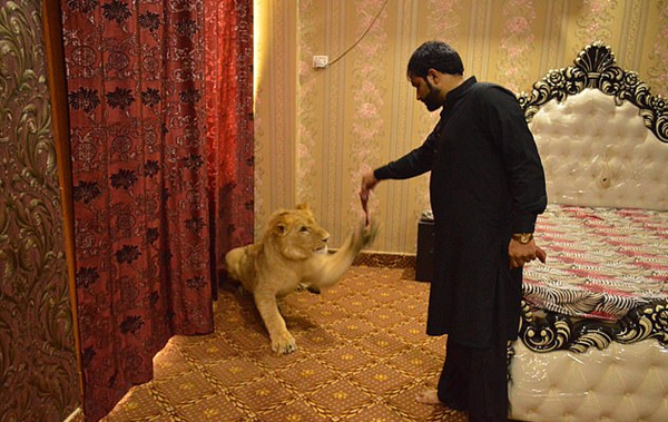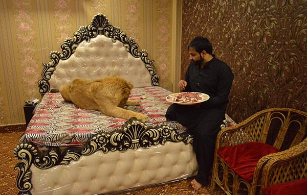 祖尔凯夫在2018年12月买下了这只当时年仅2个月大的雄性狮子幼崽。这只名叫巴伯(Babbar)的小狮子目前体重已经超过168磅(约152斤),每天要吃掉17磅(约15斤)生肉,主要是羊肉、牛肉和鸡肉。祖尔凯夫说“它每月的生活费是2400英镑(约合人民币2.1万元)。”