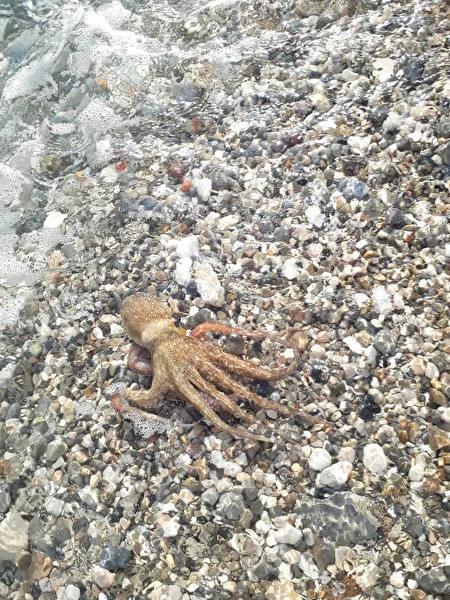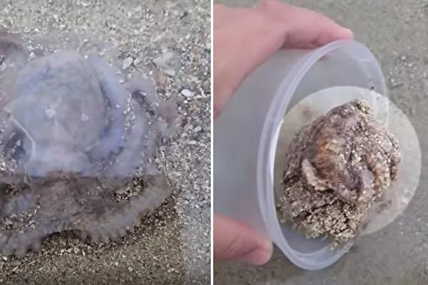小章鱼沙洲搁浅被救   游回大海前竟懂得感恩救命恩人