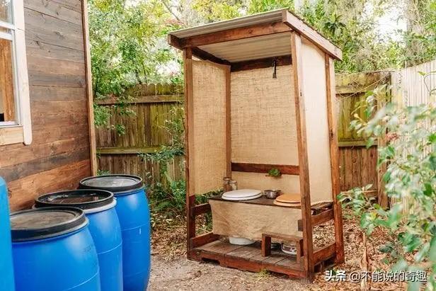 至于洗澡的问题,则在房屋的背后搭起一个小空间保护隐私,同时使用过滤过后的雨水洗净身体。