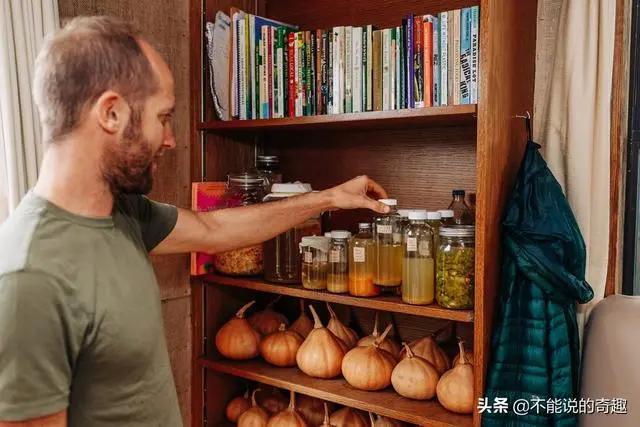 麻雀虽少,五脏俱全,他的房屋虽然空间不大,但却充分利用。落地木架上放着众多能够长时间保存的南瓜,还有各种自己泡制的蜂蜜饮品等提供各种生长所需。