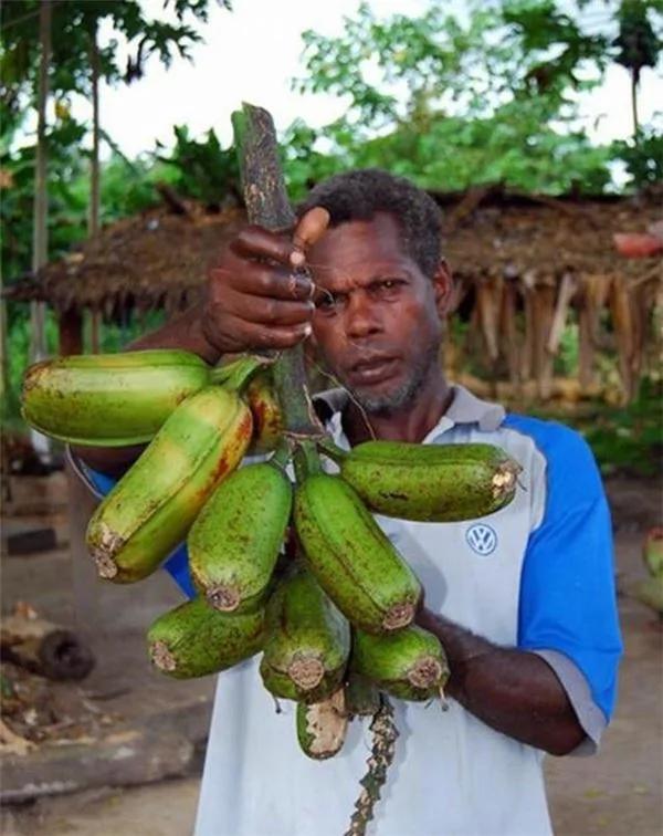 但是,巴布亚新几内亚有一种香蕉种类,体型宏大,无论是香蕉树还是香蕉,都吓人一跳!