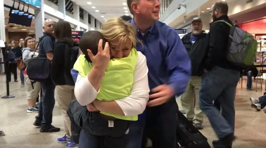 跨国领养孩子的过程不如想像中简单,因为国籍和文化的不同,当中的煎熬和艰辛,不是外人可以想像...美国的格罗弗夫妇为了来自刚果的养子约瑟夫(Joseph)和布朗森(Bronson)到美国和他们团圆,就足足花了3年的时间!当他们到盐湖城国际机场迎接儿子们,在看到对方的那一刻,所有情绪都涌了上来,感人的团圆画面让在场人相当动容! 美国尽管是全球领养跨国孩子最多的国家,但跨国领养手续却一年比一年还严格,由于牵涉到国籍和移民问题,手续过程也变得一波三折,许多美国夫妇在等待法律批准的过程中相当煎熬,不知道何时才能跟心爱的孩子们见面。