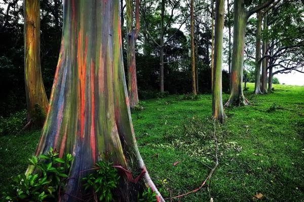 去过夏威夷的人都惊叹那儿缤纷的色彩和壮丽地貌,而这份多彩和壮丽似乎也感染了那儿的桉树。毛伊岛上就有这样一片彩虹森林,林中桉树的树皮会随着时间推移而不断变换颜色,由绿到蓝再到紫等等,恍若凝固的彩虹,如梦似画。