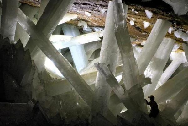 位于墨西哥,其尺寸大于房屋,它是迄今为止已知的地球上规模最大的此类晶体,而且它仍然以极其缓慢的速度在增长,因为通常情况下石膏想要达到超过两层楼高需要长达一百万年。据研究人员推测,这些巨大的晶体的微观液体内可能持有微生物。